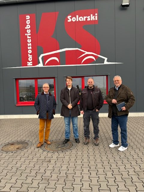 Butzbach – Vertreter der FDP Butzbach haben den Karosseriebau Solarski besucht und sich vor Ort ein umfassendes Bild vom Betrieb gemacht. An dem Termin nahmen Leo Jung, jüngster Spitzenkandidat der FDP Butzbach, sowie Rüdiger Fanslau und Uwe Schmittberger teil.